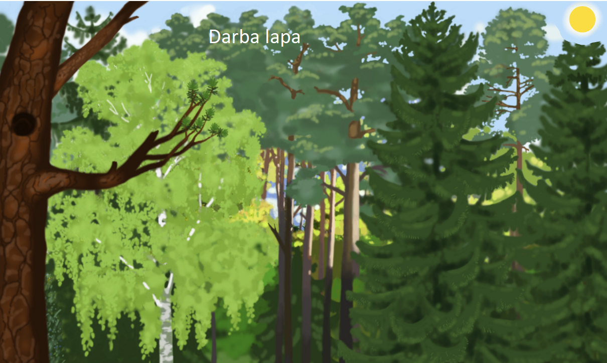 - Nosaukt meža augšējā, koku stāva, augu sugas (priede, egle,bērzs);
